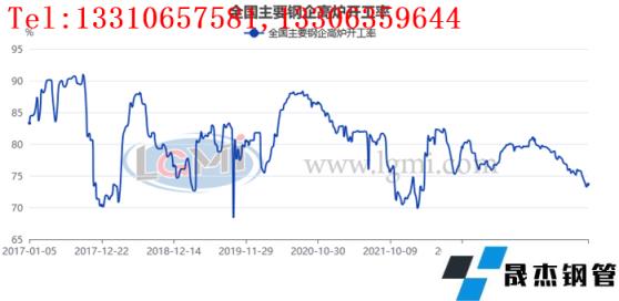 圖4全國(guó)主要厚壁無縫鋼管企業(yè)高爐開工率