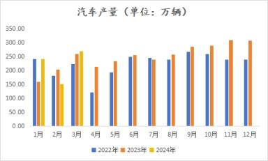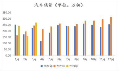 據(jù)中國汽車工業(yè)協(xié)會統(tǒng)計,2024年3月,汽車產(chǎn)銷分別完成268.7萬輛和269.4萬輛,環(huán)比分別增長78.4%和70.2%,同比分別增長4%和9.9%。2024年1-3月,汽車產(chǎn)銷分別完成660.6萬輛和672萬輛,同比分別增長6.4%和10.6%。
