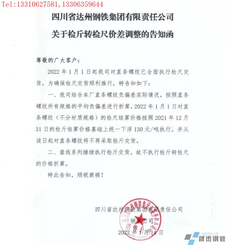 免責(zé)聲明:本網(wǎng)站(山東聊城晟杰無縫鋼管廠www.iqiwa.cn)刊載的“四川多家鋼企發(fā)布檢斤轉(zhuǎn)檢尺價差調(diào)整通知”等均源于網(wǎng)絡(luò),版權(quán)歸原作者所有,且僅代表原作者觀點,本文所載信息僅供參考。轉(zhuǎn)載僅為學(xué)習(xí)與交流之目的,如無意中侵犯您的合法權(quán)益,請及時聯(lián)系刪除。本網(wǎng)站刊登此篇文章并不意味著本站贊同其觀點或證實其內(nèi)容的真實性,我們不對其科學(xué)性、嚴(yán)肅性等作任何形式的保證。如果侵犯了您的版權(quán),請盡快聯(lián)系我們予以撤銷,謝謝合作!