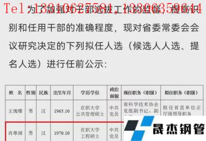 2021年12月12日,湖南日報發(fā)布湖南省委對王瑰曙、肖尊湖的任前公示,湖南華菱漣源鋼鐵有限公司黨委書記、執(zhí)行董事擬任湖南省管企業(yè)正職。