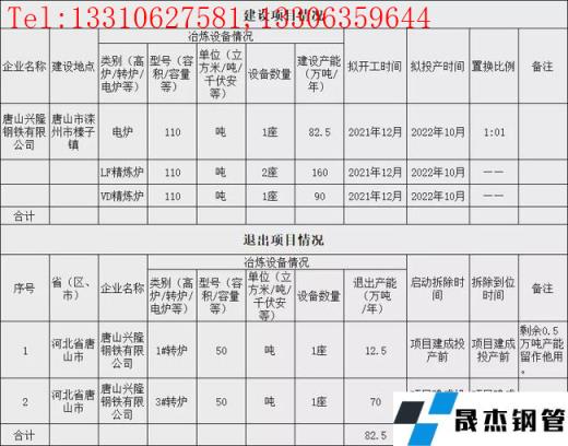 唐山興隆鋼鐵有限公司煉鋼產(chǎn)能等量置換轉(zhuǎn)型升級項目產(chǎn)能置換方案