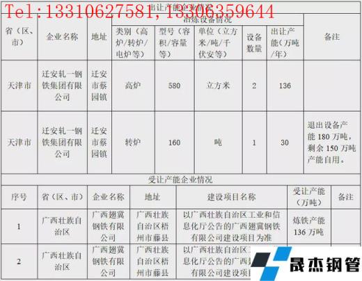 12月31日,天津市工信局發(fā)布遷安軋一鋼鐵集團有限公司產(chǎn)能出讓公告。遷安軋一鋼鐵集團有限公司出讓580m3高爐2座和160t轉(zhuǎn)爐1座設(shè)備給廣西翅冀鋼鐵,共計出讓煉鐵產(chǎn)能136萬噸,煉鋼產(chǎn)能30萬噸。