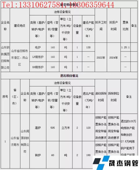 2022年1月11日,山東省工信廳發(fā)布《日照鋼鐵精品基地短流程綠色智慧示范項目產(chǎn)能置換方案》。方案表明,山東鋼鐵集團日照有限公司擬于2022年在山東省日照市東港區(qū)、嵐山區(qū)新建160t電爐1座,160tLF精煉爐1座,160tRH精煉爐1座,共計產(chǎn)能130萬噸/年,預(yù)計2024年投產(chǎn)。同時,山東閩源鋼鐵有限公司退出505m3高爐2座,產(chǎn)能120萬噸/年;60t轉(zhuǎn)爐2座,產(chǎn)能190萬噸/年。