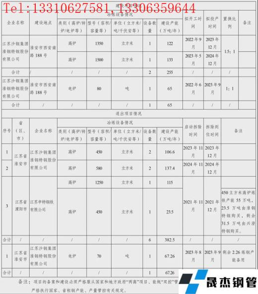 2022年1月6日,江蘇省工信廳發(fā)布沙鋼集團淮鋼特鋼高爐電爐綠色升級改造項目產(chǎn)能置換方案。方案表明,江蘇沙鋼集團淮鋼特鋼股份有限公司擬于2022年6月-2023年5月新建1350m3高爐1座、1500m3高爐1座和80t電爐1座,共計新增煉鐵產(chǎn)能255萬噸/年,煉鋼產(chǎn)能65萬噸/年。所有項目預(yù)計2023年9月-2024年12月投產(chǎn)。