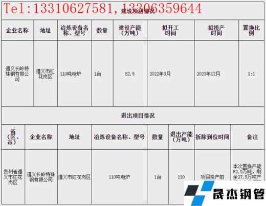 遵義長嶺特殊鋼有限公司產(chǎn)能置換方案