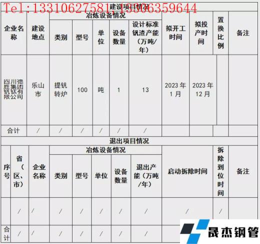 12月24日,四川省經(jīng)信廳發(fā)布四川德勝集團釩鈦有限公司提釩轉(zhuǎn)爐建設(shè)項目產(chǎn)能置換方案。方案表明,四川德勝集團釩鈦有限公司擬于2023年1月在樂山市新建100t提釩轉(zhuǎn)爐1座,產(chǎn)能13萬噸/年,預(yù)計于2023年12月投產(chǎn)。