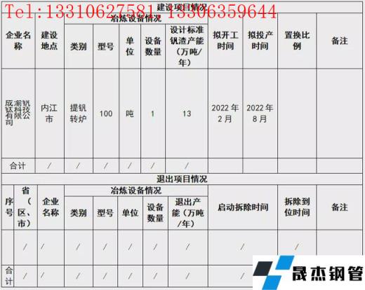 成渝釩鈦科技有限公司提釩轉(zhuǎn)爐建設(shè)項目產(chǎn)能置換方案