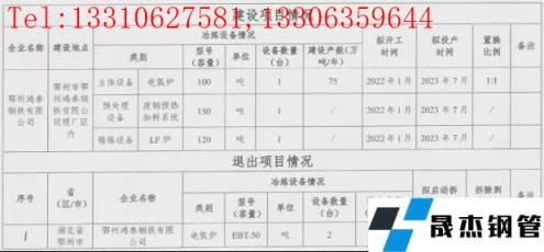 鄂州鴻泰鋼鐵75萬噸/年電爐煉鋼建設(shè)項目產(chǎn)能置換方案公告