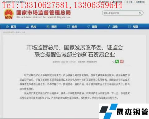 針對“瘋狂的石頭”,市場迫切需要降溫。2月15日,市場監(jiān)管總局、國家發(fā)展改革委、證監(jiān)會聯(lián)合發(fā)聲,提醒告誡部分鐵礦石貿(mào)易企業(yè)不得編造發(fā)布虛假價格信息,不得惡意炒作、囤積居奇、哄抬價格,號召相關(guān)國有企業(yè)主動承擔社會責任,助力政府保供穩(wěn)價。