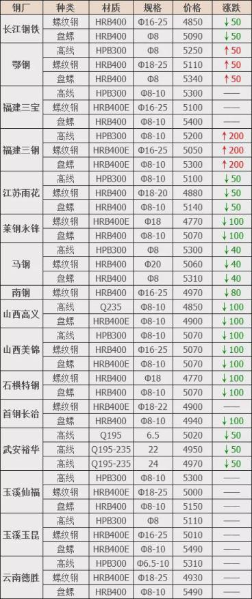 下調(diào)11家,占比68.7%,調(diào)價(jià)幅度40-100元/噸;