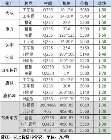 今日型、特鋼共8家無縫鋼管廠家調價發(fā)布,其中: