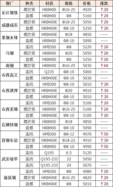 3月18日廣東東日特鋼漲60,不含稅到廠價(jià):鋼筋切粒3550,邊角料3520,純鋼筋頭,模具鋼,優(yōu)重,馬蹄鐵3500,冷熱軋,重廢,機(jī)械生鐵3450,中厚剪3300-3400,單位:元/噸。
