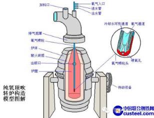 原料:1.鐵水(80%-85%):用封閉保溫的魚雷罐車從煉鐵廠運來(以前用敞口鐵水罐);2.廢鋼(15%-20%):事先破碎不攙雜質(zhì)異物。