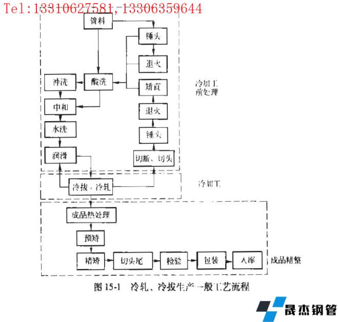 盡管冷加工管的規(guī)格范圍、尺寸精度、表面質(zhì)量和組織性能均比熱軋優(yōu)異,但其生產(chǎn)中存在四個方面的問題: 循環(huán)次數(shù)多、生產(chǎn)周期長、金屬消耗大、中間處理過程復(fù)雜,圖151 是碳鋼管和合金鋼管的冷軋、冷拔生產(chǎn)的一般工藝流程圖。各種鋼管由于其材質(zhì)、技術(shù)條件、規(guī)格不同,其生產(chǎn)工藝流程及工藝制度也有所不同,但總的來說由下列主要工序組成: