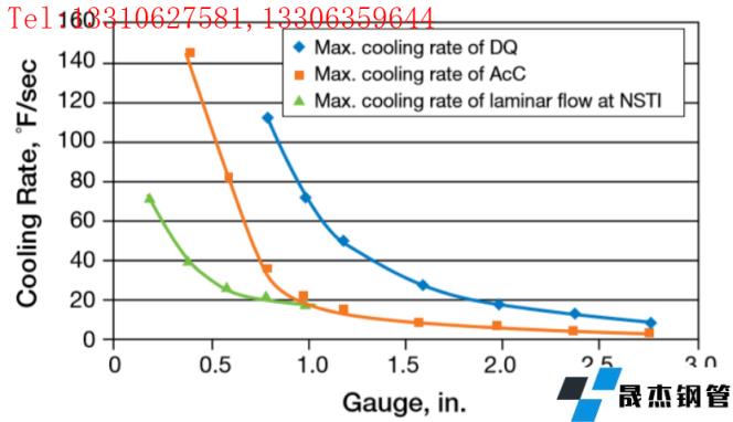 圖2各種冷卻方法對比(橫坐標:鋼板厚度;縱坐標:冷速)