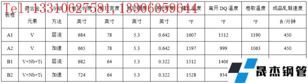 精軋最后三道次的帶鋼溫度控制在1700℉的非再結(jié)晶溫度以下,為了檢查厚度方向上組織的均勻性,將含釩的HSLA鋼板軋制至0.642英寸(16mm)鋼板,采用9道次軋制程序,釩結(jié)合鈮和鈦HSLA鋼使用11道次軋制成0.322英寸(8mm)厚度的鋼板。