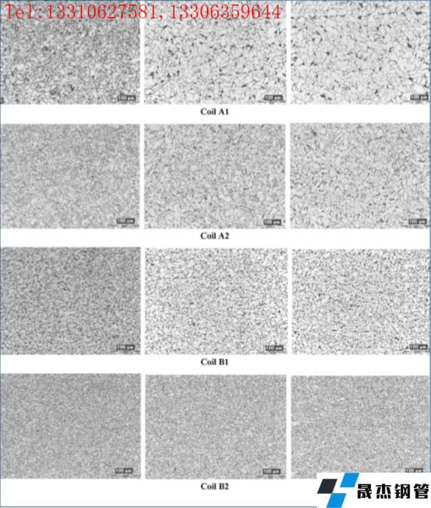 鋼中的微合金化元素控制著微觀組織結(jié)構(gòu),通過對兩種成分的顯微組織比較,從加熱爐加熱到控制軋制和加速冷卻過程中,鈮和鈦的加入導致微觀組織的細化,軋制和冷卻過程中形成的鈮的析出物對最終組織的控制起著重要作用,從而提供更高的強度和更好的韌性。