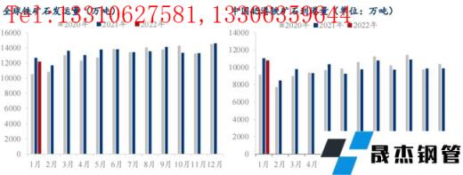 鐵水產(chǎn)量:1月進(jìn)入新的一年,限產(chǎn)較上月放松明顯,各地均以復(fù)產(chǎn)為主,鐵水產(chǎn)量呈現(xiàn)持續(xù)增加的趨勢(shì)。截至1月28日,預(yù)計(jì)統(tǒng)計(jì)247家無(wú)縫厚壁鋼管廠家樣本1月鐵水產(chǎn)量總量環(huán)比上月增加462萬(wàn)噸至6678萬(wàn)噸,日均鐵水產(chǎn)量環(huán)比增加14.9萬(wàn)噸/天至215.4萬(wàn)噸/天,增幅7.4%。本月鐵水產(chǎn)量增量主要集中在華北和華東地區(qū),從1月28日的最新數(shù)據(jù)來(lái)看,華北地區(qū)日均鐵水產(chǎn)量已經(jīng)較上月底增加9.8萬(wàn)噸/天,華東地區(qū)較上月底增加3.6萬(wàn)噸/天。此外,1月下旬部分地區(qū)發(fā)布新限產(chǎn)文件,在冬奧會(huì)和殘奧會(huì)均有限產(chǎn)加嚴(yán)的措施,因此預(yù)計(jì)2月鐵水產(chǎn)量將承壓下降,據(jù)月末調(diào)研了解,2月日均鐵水產(chǎn)量將回落至211萬(wàn)噸/天。