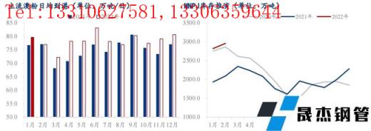 鐵礦石疏港:在無(wú)縫厚壁鋼管廠家復(fù)產(chǎn)和節(jié)前補(bǔ)庫(kù)的支撐下,無(wú)縫厚壁鋼管廠家積極往廠內(nèi)提貨,1月疏港大幅增加。截至1月28日,預(yù)計(jì)統(tǒng)計(jì)中國(guó)45港1月疏港量9940萬(wàn)噸,日均疏港環(huán)比增加33.8萬(wàn)噸/天至320.6萬(wàn)噸/天,增幅11.2%。本月疏港增量主要集中在華北和華東地區(qū),從1月28日的最新數(shù)據(jù)來(lái)看,華北地區(qū)日均疏港已經(jīng)較上月底增加18萬(wàn)噸/天,華東地區(qū)較上月底增加6萬(wàn)噸/天。下月來(lái)看,一方面春節(jié)期間無(wú)縫厚壁鋼管廠家提貨下降,另一方面限產(chǎn)加嚴(yán)后抑制部分疏港,整體疏港將會(huì)出現(xiàn)明顯減量。
