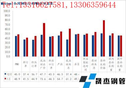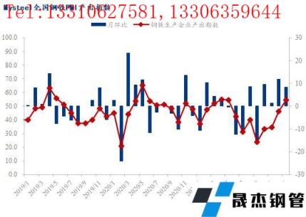 1月份,全國鋼鐵行業(yè)無縫厚壁鋼管廠家產(chǎn)出指數(shù)較12月份回升8.4個百分點,終值54.7。具體來看,進入1月份,各地對長流程無縫厚壁鋼管廠家限產(chǎn)政策明顯放松,各地高爐陸續(xù)復產(chǎn),粗鋼產(chǎn)量明顯回升。至后半月,隨著春節(jié)假期臨近,短流程無縫厚壁鋼管廠家陸續(xù)放假,無縫厚壁鋼管廠家產(chǎn)量小幅回落。整體而言,1月份國內(nèi)鋼鐵產(chǎn)出明顯回升。
