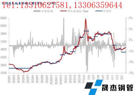截至1月30日,國內(nèi)24個主要城市4.75mm熱軋板卷均價為4914元/噸,月環(huán)比上漲126元/噸,較去年同期上漲413元/噸。