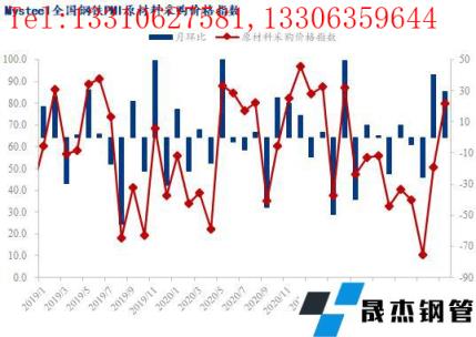 從相關(guān)指數(shù)來看,本月成品材出廠價指數(shù)大幅回升25.9個百分點至73.6,無縫厚壁鋼管廠家成品材庫存指數(shù)大幅回升23.8個百分點至61.2,同時原材料采購價指數(shù)大幅回升29.2個百分點至79.7,國內(nèi)原材料采購量指數(shù)回升4.8個百分點至50.9,國外原材料采購量指數(shù)持平為43.1。
