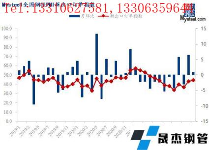 1月份全國鋼鐵行業(yè)新出口訂單指數(shù)44.3,較12月份回升0.9個百分點,不過仍繼續(xù)處于榮枯線下方。海關(guān)總署數(shù)據(jù)顯示,2021年,我國厚壁無縫鋼管累計出口量6689.5萬噸,同比增長24.6%;厚壁無縫鋼管累計進口量1426.8萬噸,同比下降29.5%。