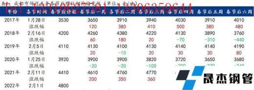 筆者回顧了近5年西南區(qū)域各主要建筑厚壁無縫鋼管市場價(jià)格,通過對節(jié)后六周價(jià)格變化的對比得出,除2020年春節(jié)后受公共衛(wèi)生事件影響,其余時(shí)間節(jié)后前兩周基本以“開門紅”的上漲行情為主。