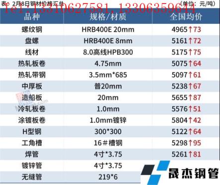 熱軋板卷:2月8日,全國24個主要城市4.75mm熱軋板卷均價5075元/噸,較上個交易日價格上漲64元/噸。目前在冬奧會限產(chǎn)背景下,產(chǎn)量繼續(xù)小幅回落,隨著各類企業(yè)的復(fù)工復(fù)產(chǎn)以及消費旺季的即將到來,需求或?qū)⒅饾u好轉(zhuǎn),市場情緒較為樂觀,預(yù)計9日熱軋板卷價格或?qū)⒗^續(xù)上漲。
