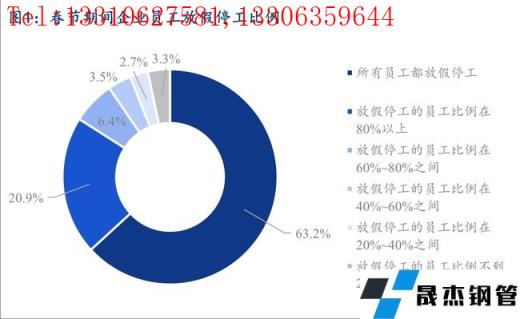 據(jù)調(diào)研,春節(jié)期間所有員工都放假停工的企業(yè)占調(diào)研樣本比例達(dá)到63.2%,放假停工的員工比例在80%以上的企業(yè)樣本占比達(dá)到20.9%,同時(shí)放假停工的員工比例不到20%的企業(yè)僅占比3.3%。