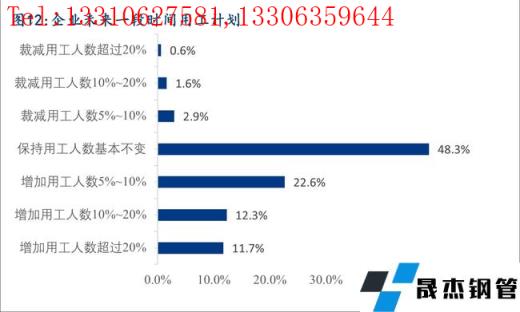 6、目前企業(yè)在崗員工人數(shù)與實(shí)際需求基本匹配的占比為48.0%,35.5%的企業(yè)目前在崗員工人數(shù)與實(shí)際需求相比存在少量的缺口,46.6%的企業(yè)在未來(lái)一段時(shí)間內(nèi)有增加用工人數(shù)的計(jì)劃,由此可見(jiàn)未來(lái)一段時(shí)間內(nèi)行業(yè)用工需求依然較大,僅僅只有5.1%的企業(yè)未在崗員工人數(shù)超過(guò)實(shí)際需求,預(yù)計(jì)未來(lái)一段時(shí)間會(huì)有少量的人員裁減計(jì)劃。