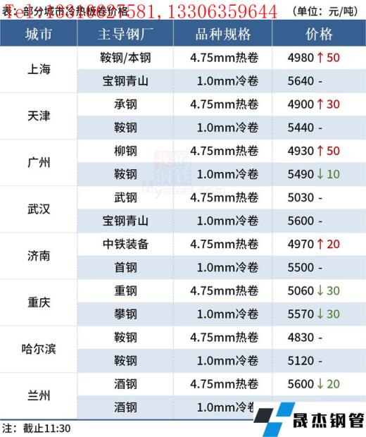 ◎樂(lè)從:16日早盤熱卷市場(chǎng)價(jià)格上漲50,4.75以上普柳燕4930-4940,2.75普5000-5150錳5120-5140。(單位:元/噸)