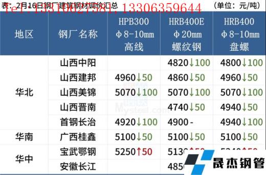 建筑厚壁無(wú)縫鋼管:2月16日,全國(guó)31個(gè)主要城市20mm三級(jí)抗震螺紋鋼均價(jià)4958元/噸,較上個(gè)交易日跌8元/噸。短期來(lái)看,隨著原料價(jià)格的走弱,需求持續(xù)低迷,市場(chǎng)悲觀情緒漸濃,貿(mào)易商低價(jià)套現(xiàn)操作較為普遍。元宵之后下游工地存在一定復(fù)工預(yù)期,但未來(lái)幾日又將持續(xù)雨水天氣,需求釋放力度仍有待考證,預(yù)計(jì)17日國(guó)內(nèi)建筑厚壁無(wú)縫鋼管價(jià)格或?qū)⒅沟蠓€(wěn)。