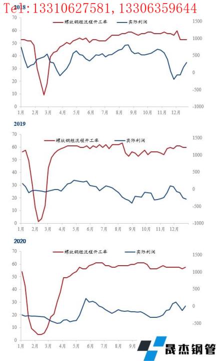 在開工率達(dá)到相對高位的情況下,電爐鋼的實(shí)際利潤并不會推動其上升,實(shí)際利潤對于開工率的向下拉動作用反而更為明顯,據(jù)2018年到2020年的開工率數(shù)據(jù)推算,當(dāng)實(shí)際利潤下降幅度在100元/噸以上時,開工率的降幅基本都在5%左右。2020年5~6月份的無縫厚壁鋼管廠家電爐生產(chǎn)情況調(diào)查統(tǒng)計(jì)的文章中同樣可以看出,當(dāng)期厚壁無縫鋼管成本上移,部分電爐廠已現(xiàn)虧損的情況下,主動檢修減產(chǎn)的情況是有所展現(xiàn)的。2018年和2019年的諸多文章同樣也可以印證。