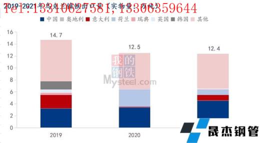 但2021年中國自俄羅斯的鎳板進口銳減,全年進4.61萬噸,占精煉鎳總進口量的17.65%,為2011年以來進口量最低的一年,也是進口量占比最低的一年。其原因在于2021年2月諾里爾斯克因礦場發(fā)生滲水事故而減產(chǎn)18.12%;加之2021年8-12月俄政府加收鎳產(chǎn)品出口稅;以及2021年挪威、住友、南非等其他進口鎳板擠占國內(nèi)市場,俄鎳進口利潤降低,國內(nèi)貿(mào)易商與俄方長單簽訂受阻。