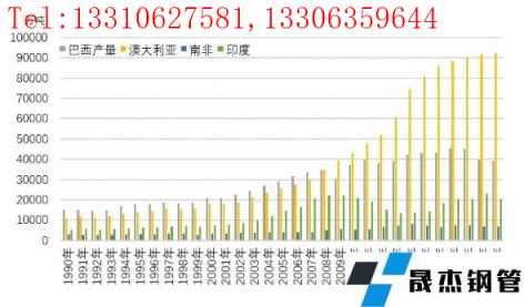 進(jìn)入新千年以后,中國(guó)鋼鐵產(chǎn)能加速擴(kuò)張帶來(lái)的強(qiáng)勁需求,拉動(dòng)全球鐵礦石產(chǎn)量快速增長(zhǎng)。據(jù)世界鋼協(xié)(WSA)統(tǒng)計(jì)數(shù)據(jù),2020年,全球鐵礦石生產(chǎn)國(guó)合計(jì)產(chǎn)量為23.4億噸。其中澳大利亞鐵礦石產(chǎn)量達(dá)到9.2億噸,占全球產(chǎn)量的比重達(dá)39.5%,是世界上鐵礦石產(chǎn)量最高的國(guó)家;巴西鐵礦石3.9億噸,占全球產(chǎn)量的比重為16.7%;印度和南非產(chǎn)量分別為2.0億噸和0.7億噸,占比分別為8.7和3.0%。上述四個(gè)國(guó)家的鐵礦石產(chǎn)量合計(jì)15.9億噸,占全球比重達(dá)到67.8%。其中南半球緯度位置相近的澳大利亞和巴西鐵礦石產(chǎn)量合計(jì)為13.1億噸,比重為56.2%,是全球鐵礦石生產(chǎn)的重心。從形成時(shí)間看,1990年,澳大利亞、巴西、印度和南非的鐵礦石產(chǎn)量為3.5億噸,占全球比重僅為35.1%。2000年時(shí)上述四國(guó)產(chǎn)量達(dá)到4.9億噸,占全球比重為51.5%。2010年四國(guó)產(chǎn)量達(dá)到10.7億噸,占全球的比重升至57.0%;從占比結(jié)構(gòu)看,澳大利亞上升最為明顯,由1990年時(shí)的11.1%上升至2020年的39.5%,累計(jì)上升28.4個(gè)百分點(diǎn)。巴西、印度和南非的占比變化不大;從增量情況看,2020年全球鐵礦石累計(jì)增量13.5億噸,其中澳大利亞增量達(dá)8.1億噸,占全球產(chǎn)量增量的60.1%,比1990年產(chǎn)量累計(jì)增長(zhǎng)了7.5倍,遠(yuǎn)高于同期巴西的1.6倍、南非的1.3倍和印度的2.8倍。