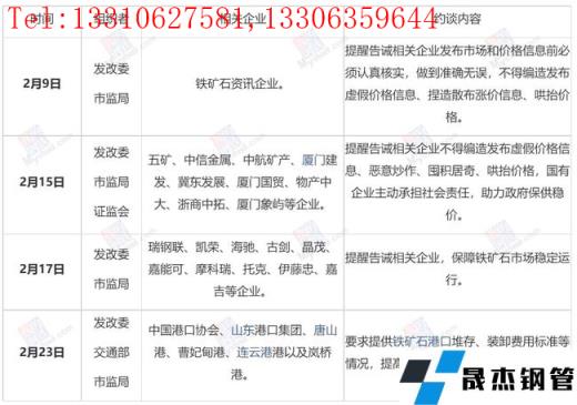 2022年2月份針對(duì)鐵礦石價(jià)格約談情況表