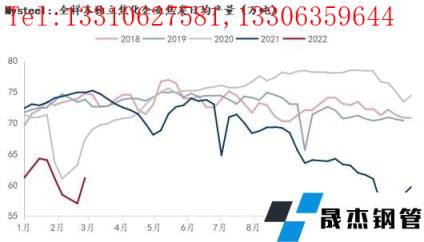 2月高爐產(chǎn)能利用率也呈現(xiàn)先降后增趨勢(shì),2月底調(diào)研247家無縫厚壁鋼管廠家高爐煉鐵產(chǎn)能利用率77.61%,比1月底下降3.9%;2月底日均鐵水產(chǎn)量208.85萬噸,比1月底下降10.5萬噸,2月日均鐵水產(chǎn)量206萬噸,月環(huán)比下降10.59萬噸。2月由于冬奧會(huì)限產(chǎn),無縫厚壁鋼管廠家落實(shí)良好,鐵水產(chǎn)量出現(xiàn)明顯下滑,也是導(dǎo)致焦炭節(jié)后下調(diào)的核心因素,進(jìn)入下旬后,隨冬奧會(huì)結(jié)束,無縫厚壁鋼管廠家復(fù)產(chǎn)預(yù)期強(qiáng)烈,且20日后復(fù)產(chǎn)兌現(xiàn)良好,需求支撐下,焦炭成功反彈。