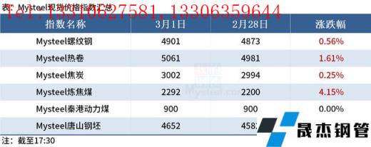 2.首鋼京唐計劃于3月2日對一條1580mm熱軋生產(chǎn)線做檢修,為期11天,總影響產(chǎn)量約在11萬噸左右;并預(yù)計于3月3日對一座5500m3高爐進行檢修至3月7日結(jié)束,為期5天左右,影響鐵水產(chǎn)量總計在6萬噸左右;此外還計劃于3月2日對酸連軋生產(chǎn)線做檢修,為期8天,總影響產(chǎn)量約在5萬噸左右。