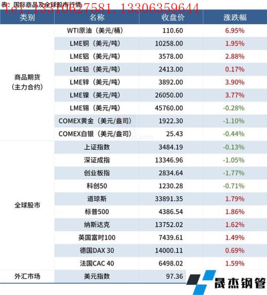 ◎ 安賽樂米塔爾歐洲公司宣布從2022年3月1日起將當?shù)劁N售的熱軋板卷價格大幅提高180歐元/噸(200美元/噸)。歐洲無縫厚壁鋼管廠家可能將冷軋板卷的目標價格定在1250歐元/噸(1389美元/噸),熱鍍鋅板定在1300歐元/噸(1445美元/噸)。