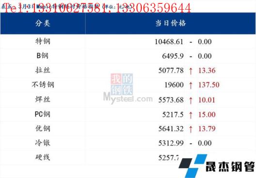 3月3日普鋼絕對價格指數(shù)變化:綜合指數(shù)5226.46,上漲37.22;螺紋鋼指數(shù)4957.35,上漲23.7;線材指數(shù)5294.7,上漲25.19;熱軋板卷指數(shù)5173.84,上漲71.05;冷軋板卷指數(shù)5570.47,上漲30.18;中厚板指數(shù)5186.84,上漲19.23。