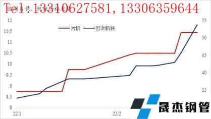 2月末俄對(duì)烏展開特別軍事行動(dòng),引發(fā)俄經(jīng)濟(jì)制裁。國(guó)際市場(chǎng)對(duì)俄羅斯Evraz公司能否正常出口釩產(chǎn)品擔(dān)憂情緒加重,導(dǎo)致歐洲釩產(chǎn)品價(jià)格快速上漲,2月24日至3月2日80釩鐵由46-48美元/公斤上升至50.5-57美元/公斤,價(jià)格上漲了4.5-9美元/公斤。