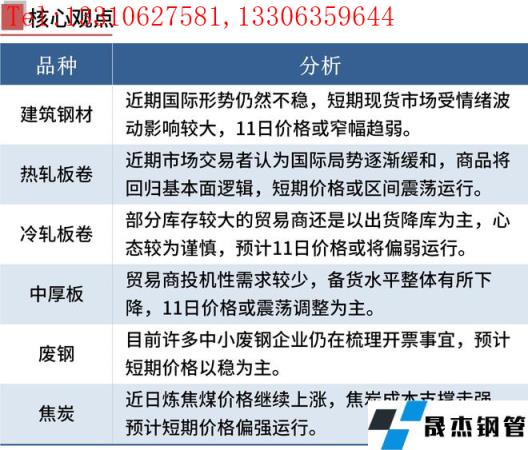 建筑厚壁無縫鋼管:3月10日,全國31個主要城市20mm三級抗震螺紋鋼均價4961元/噸,較上個交易日下跌34元/噸。本周供給繼續(xù)小增,庫存迎來拐點,且降幅尚可。綜合來看,目前供給仍然處于回升階段,但整體增量有限;需求方面,隨著天氣逐漸好轉,需求有所回升??紤]到近期國際形勢仍然不穩(wěn),短期現貨市場受情緒波動影響較大。因此預計11日國內建筑厚壁無縫鋼管價格將繼續(xù)窄幅趨弱為主。