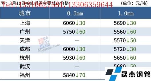 冷軋板卷:3月10日,全國24個主要城市1.0mm冷卷均價5677元/噸,較上個交易日下跌31元/噸。隨著期貨盤面連續(xù)下跌,價格也隨之下調,市場交投氛圍明顯冷清,今日整體成交一般。心態(tài)方面,部分庫存較大的貿易商還是以出貨降庫為主,心態(tài)較為謹慎。庫存方面,據不完全統計,現冷軋無縫厚壁鋼管廠家?guī)齑?4.57萬噸,周環(huán)比減少2.23萬噸,社會庫存143.40萬噸,周環(huán)比增加0.97萬噸,周消費量80.22萬噸,環(huán)比減少2.64萬噸。綜合來看,故預計11日國內冷軋板卷價格或將偏弱運行。