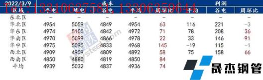 獨(dú)立電弧爐建筑厚壁無(wú)縫鋼管無(wú)縫厚壁鋼管廠家周度成本調(diào)研(2022年3月9日)(單位:元/噸)