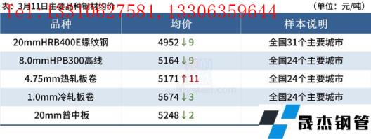 ◎ 3月11日,全國主港鐵礦石成交98.50萬噸,環(huán)比減11.3%;237家主流貿(mào)易商建材成交19.43萬噸,環(huán)比增11%。