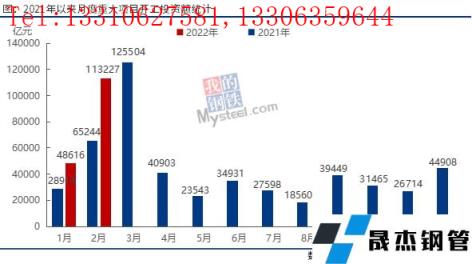 2月春節(jié)以來(lái),全國(guó)迎來(lái)開工潮,甘肅、吉林、山東、陜西、湖北、浙江、湖南、江西、云南、福建等10省相繼舉行省級(jí)重大項(xiàng)目集中開工活動(dòng)。據(jù)不完全統(tǒng)計(jì),2022年2月,全國(guó)各地共開工20459個(gè)項(xiàng)目,總投資額11.3萬(wàn)億,2月開工項(xiàng)目數(shù)量環(huán)比增208.4%,總投資額環(huán)比增132.9%,同比增73.5%。