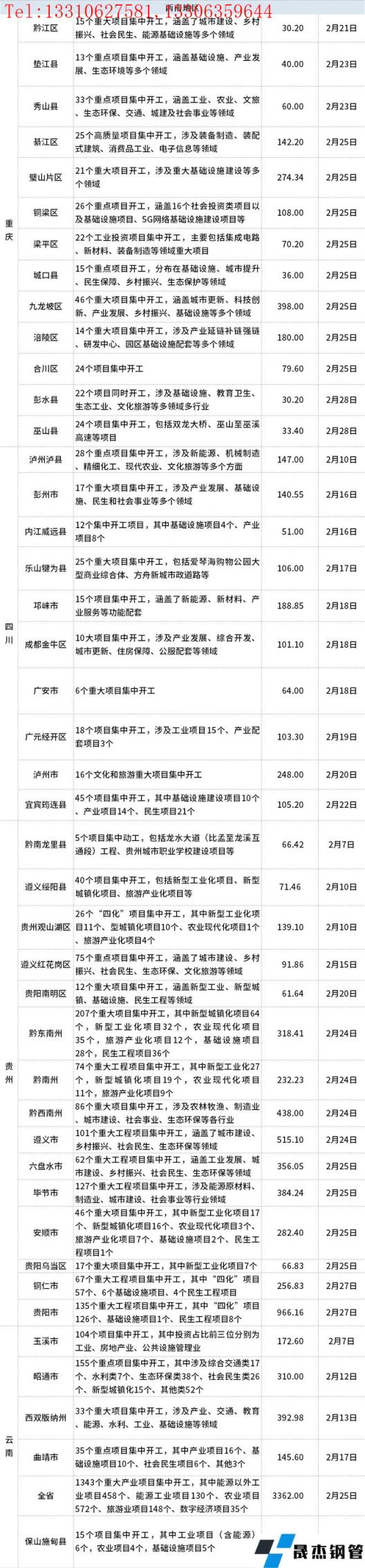 開工項(xiàng)目詳細(xì)情況如下: