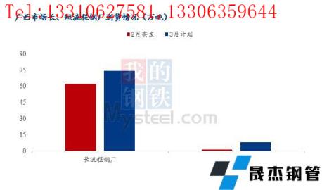 1、3月份廣西地區(qū)建筑材省內(nèi)長(zhǎng)流程無(wú)縫厚壁鋼管廠家計(jì)劃供應(yīng)量共計(jì)74.1萬(wàn)噸,環(huán)比增加11.9萬(wàn)噸,增幅為19.13%;短流程無(wú)縫厚壁鋼管廠家到貨量為8.4萬(wàn)噸,環(huán)比增加6.8萬(wàn)噸,增幅較大。