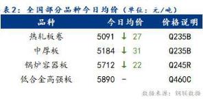 今日全國(guó)部分品種均價(jià)總體趨弱,整體跌幅為22~31元/噸。